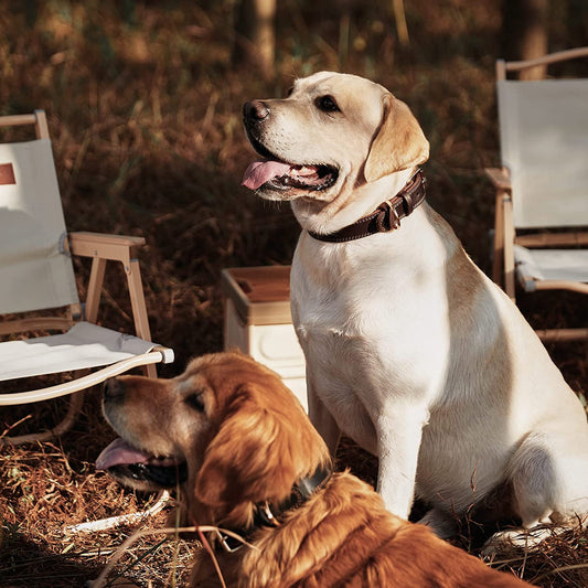 Leather Dog Collar, Genuine Heavy Duty Wide Dog Collar for Small,Medium,Large and Extra Large Dog (S: 0.8" Wide for 13.4"-15.8" Neck, Dual Stitch - Brown)